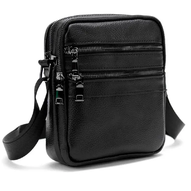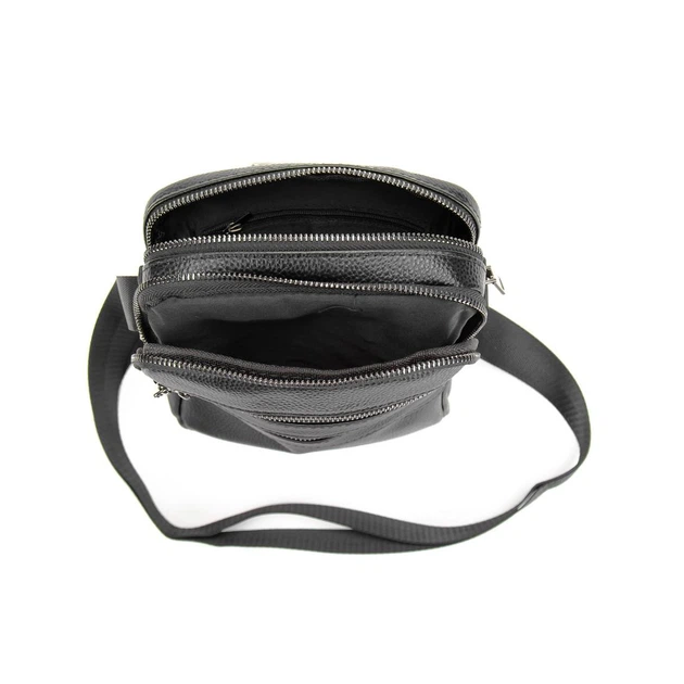 Two spacious main compartments with zippers, two additional front zip pockets, and one back zip pocket.